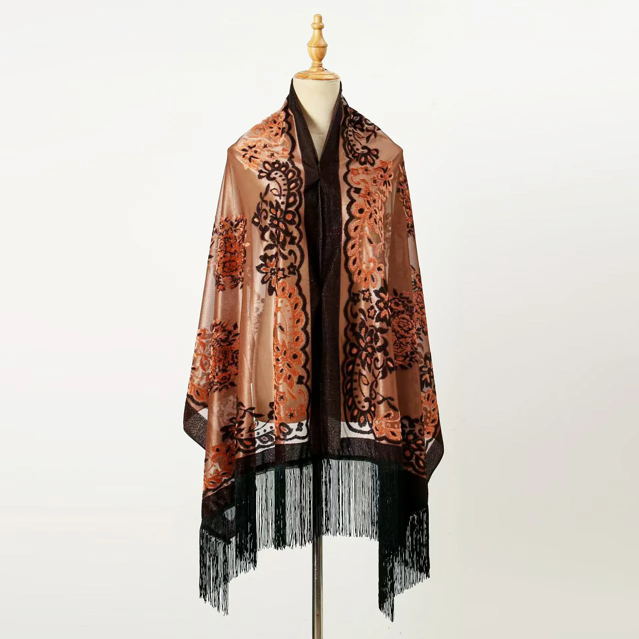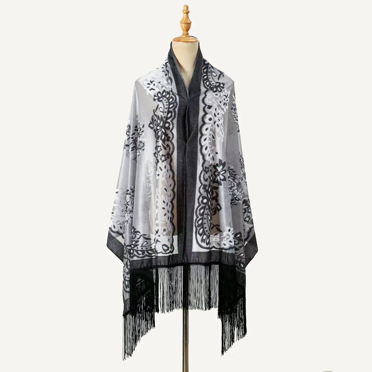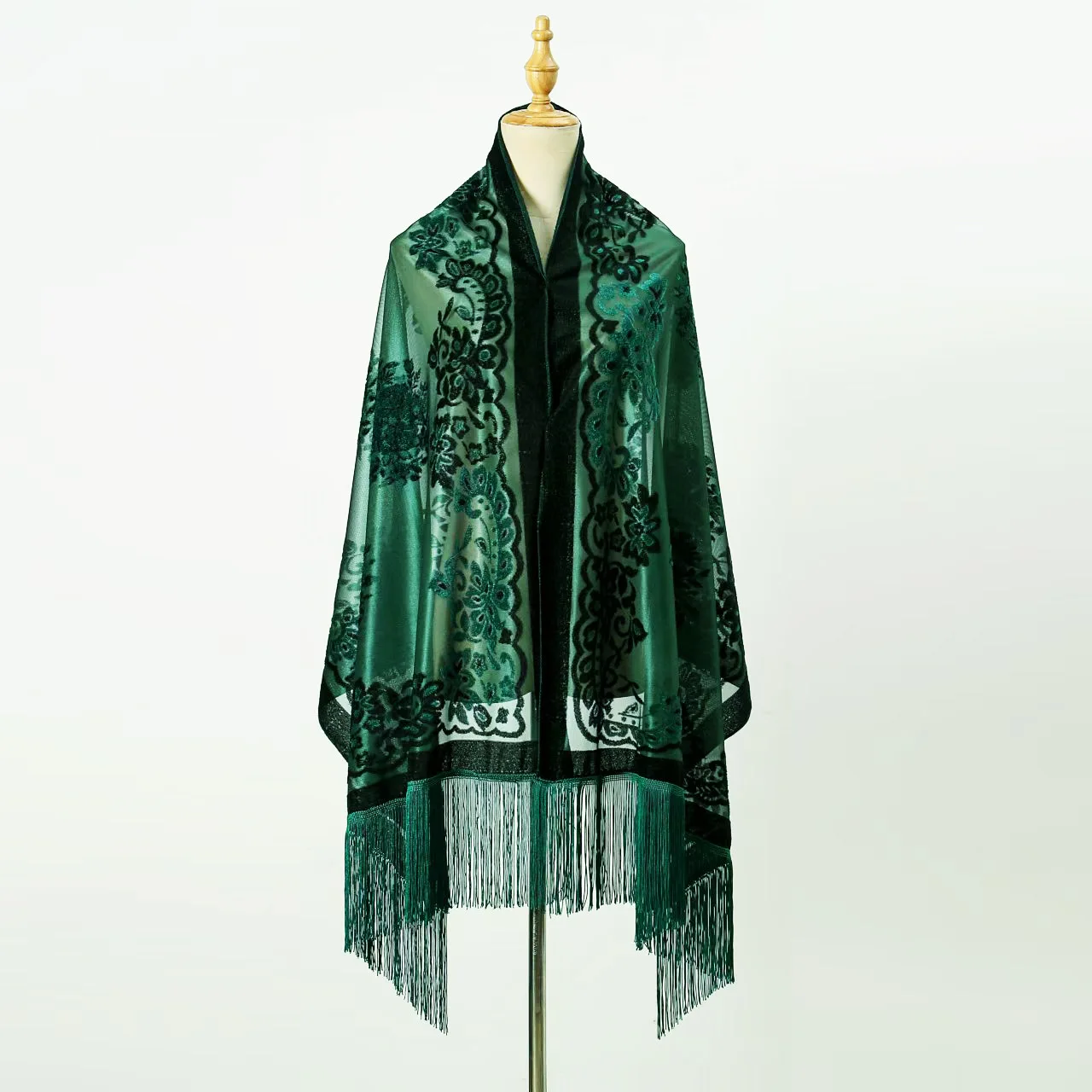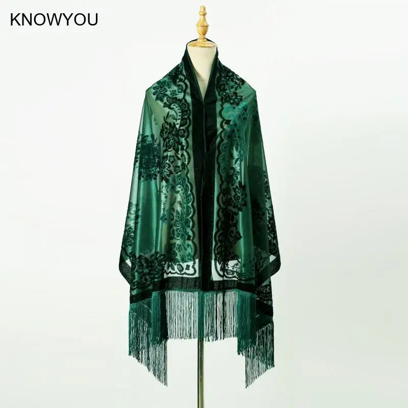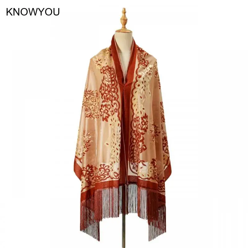 190*70Cm Shawls Luxury Velour Jacquard Pashmina Lady Elegant Evening Party Shawl Long Tassels Cape Women Qipao Echarpes