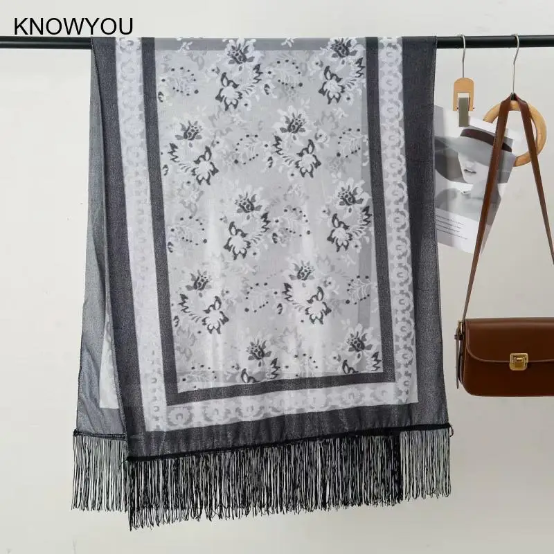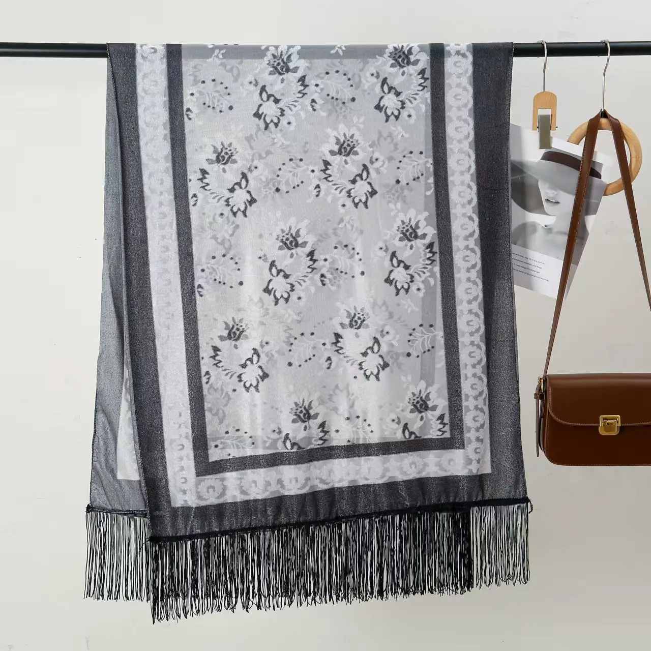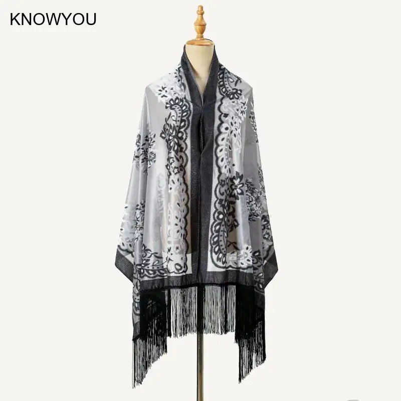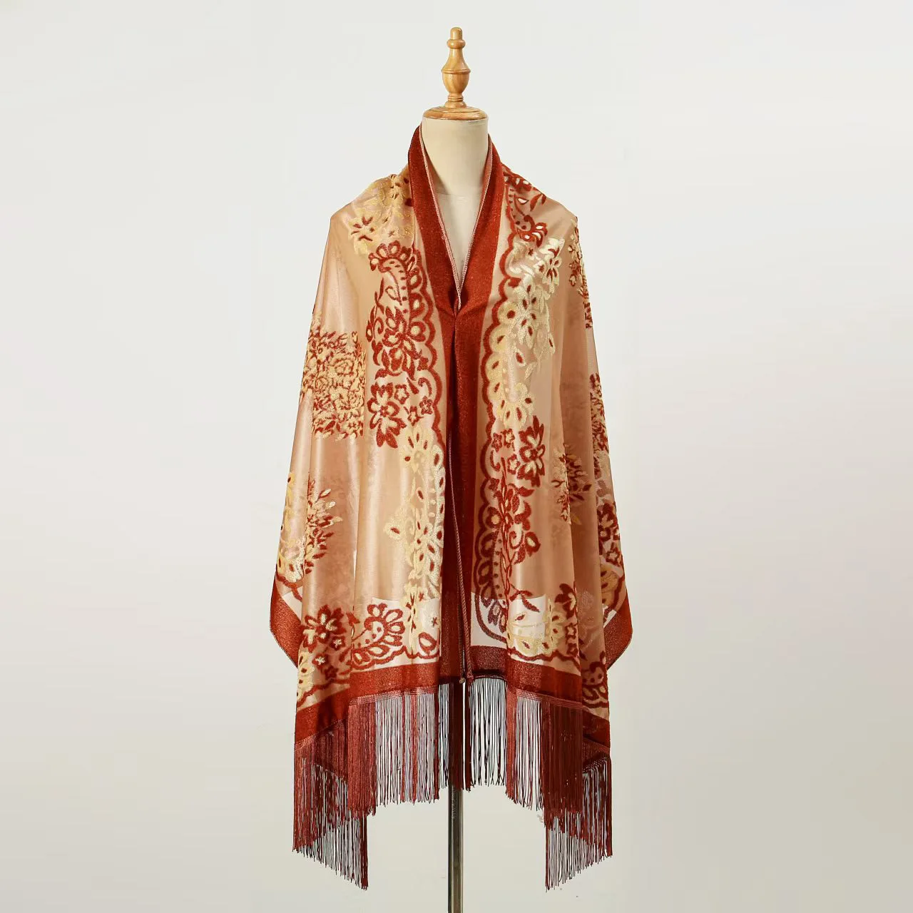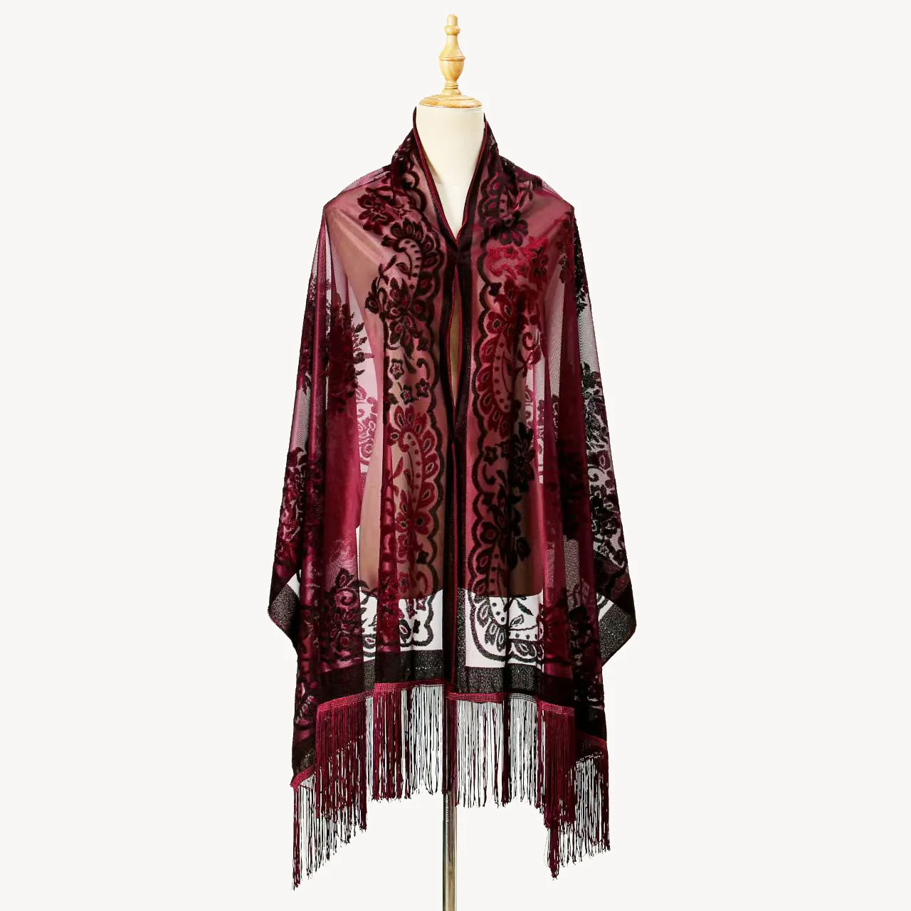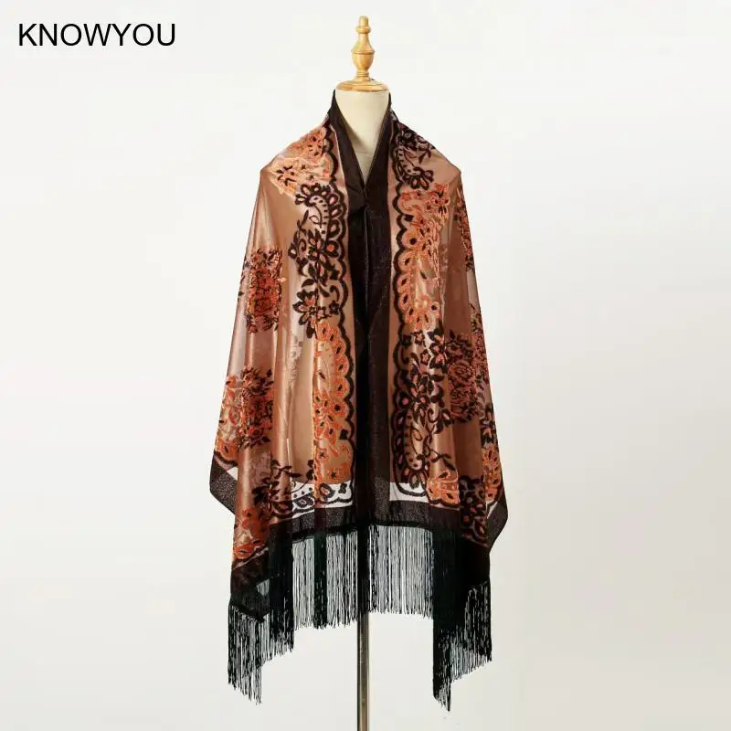 190*70Cm Shawls Luxury Velour Jacquard Pashmina Lady Elegant Evening Party Shawl Long Tassels Cape Women Qipao Echarpes