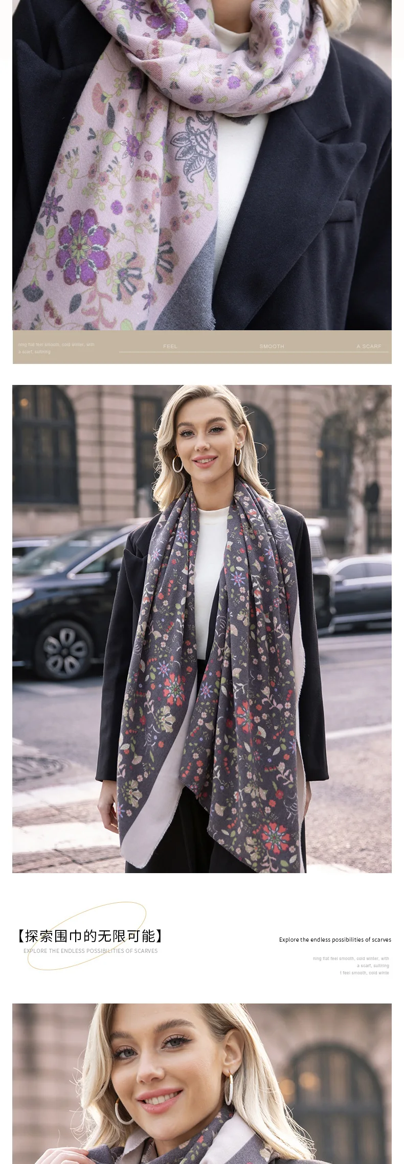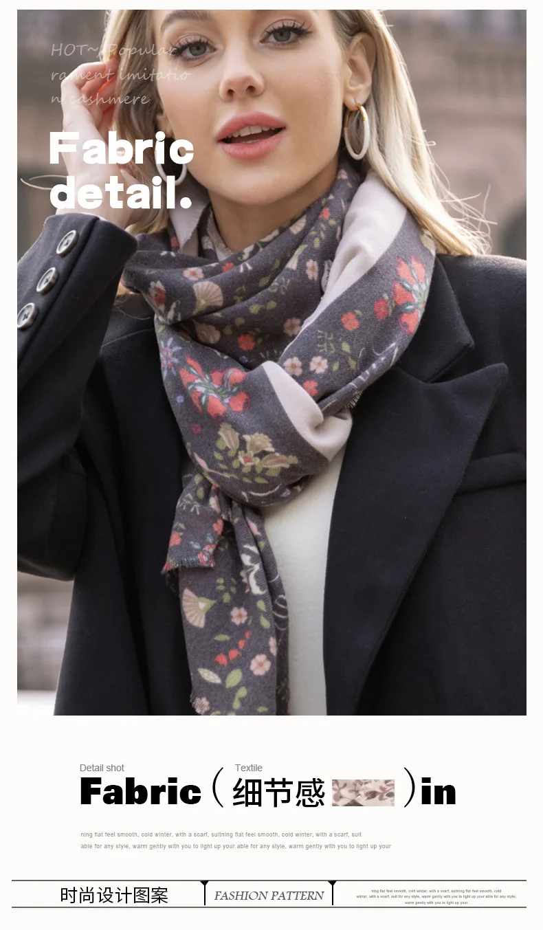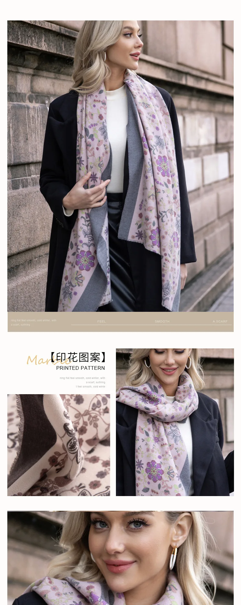 2024 New Winter Scarves Flower Print Cashmere Blend Mujer Bufanda Kady Elegant Echarpes Soft Shawls Pashmina