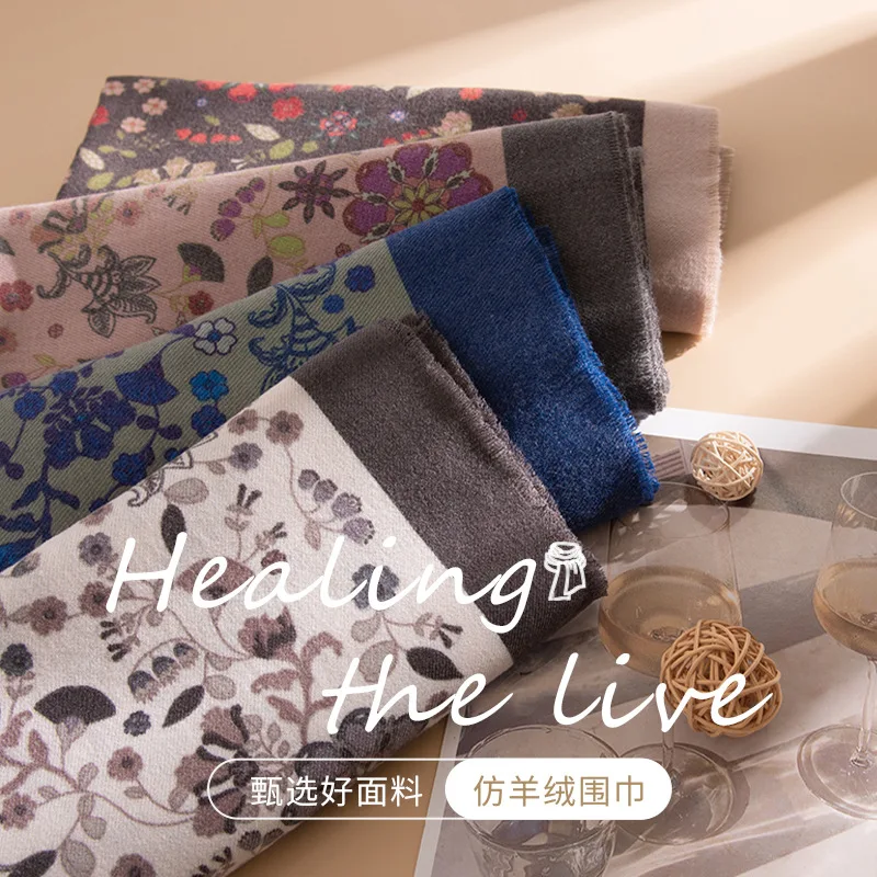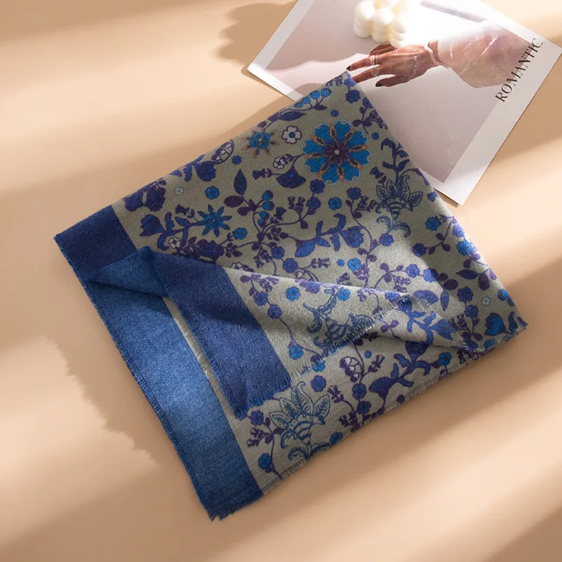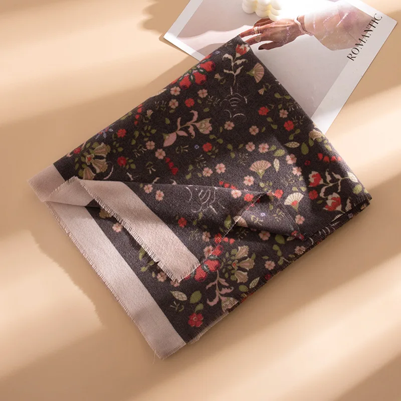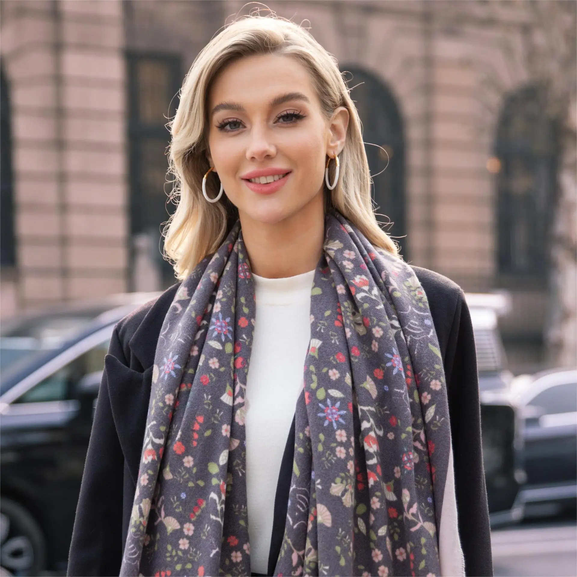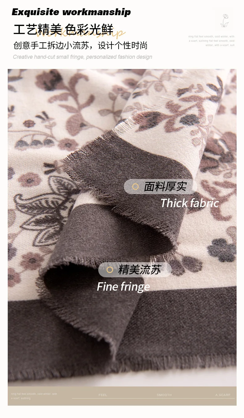 2024 New Winter Scarves Flower Print Cashmere Blend Mujer Bufanda Kady Elegant Echarpes Soft Shawls Pashmina