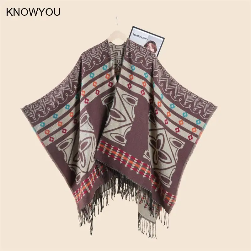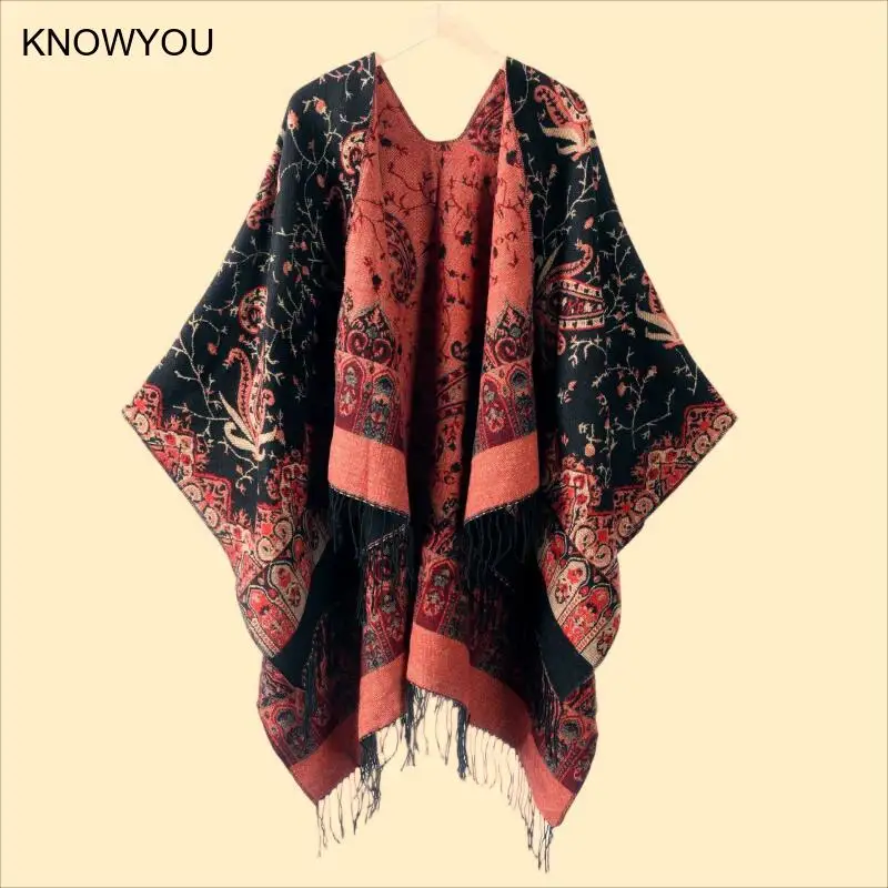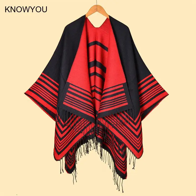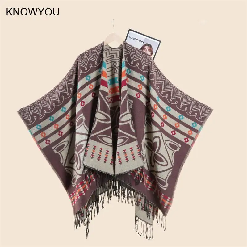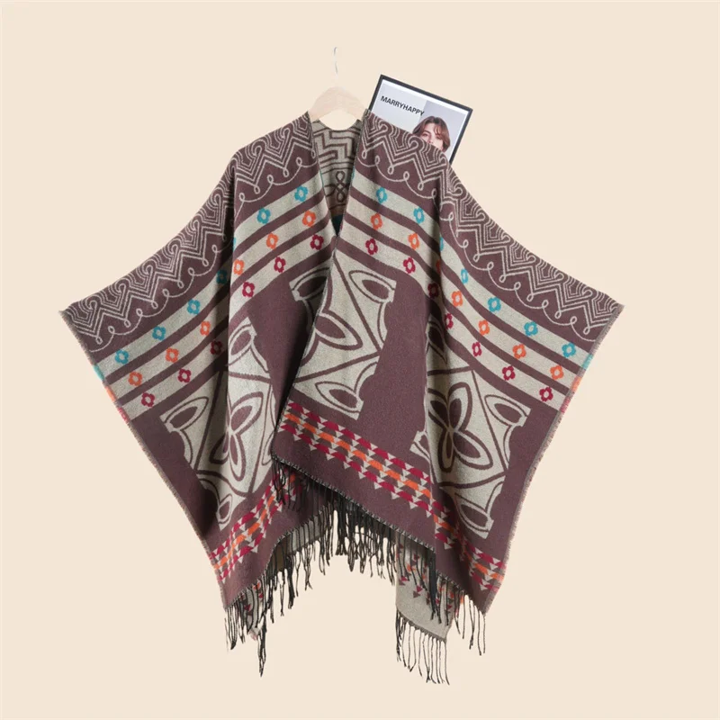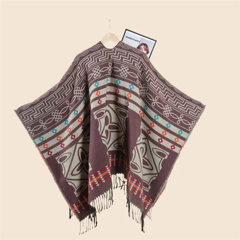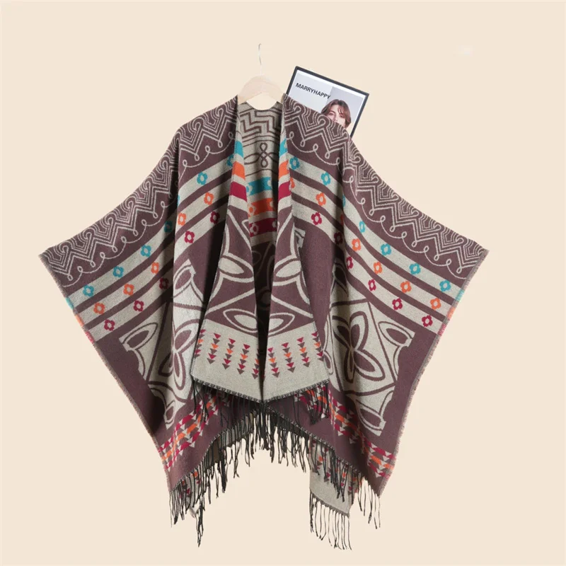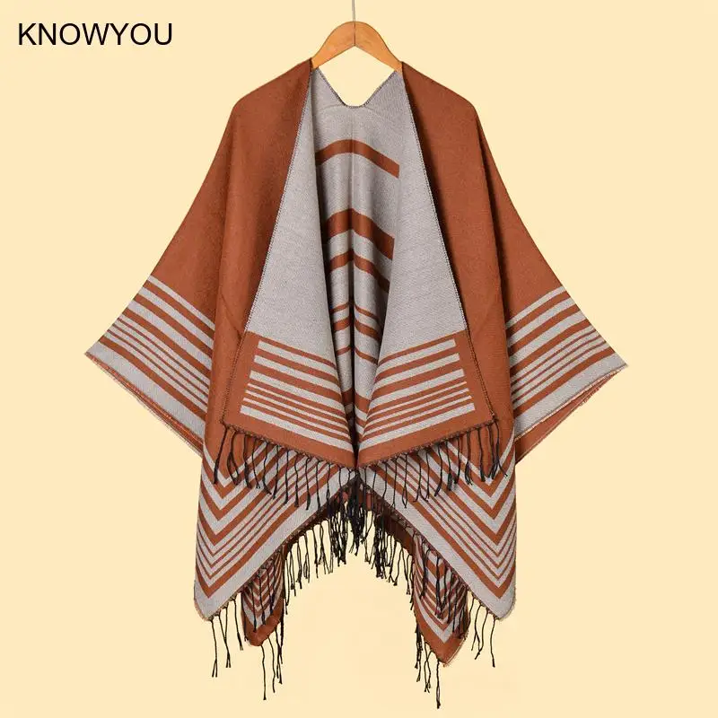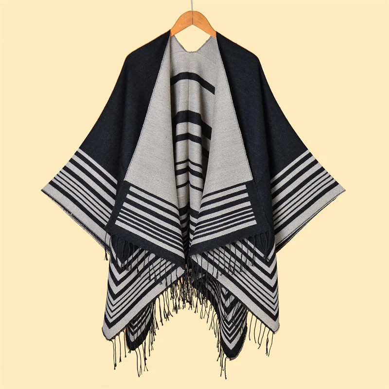 2025 New Winter Wrap Adult Capes Warm Bufanda Thick Artificial Cashmere Pashmina Men Long Tassel Jacket Outwear Travel Ponchos