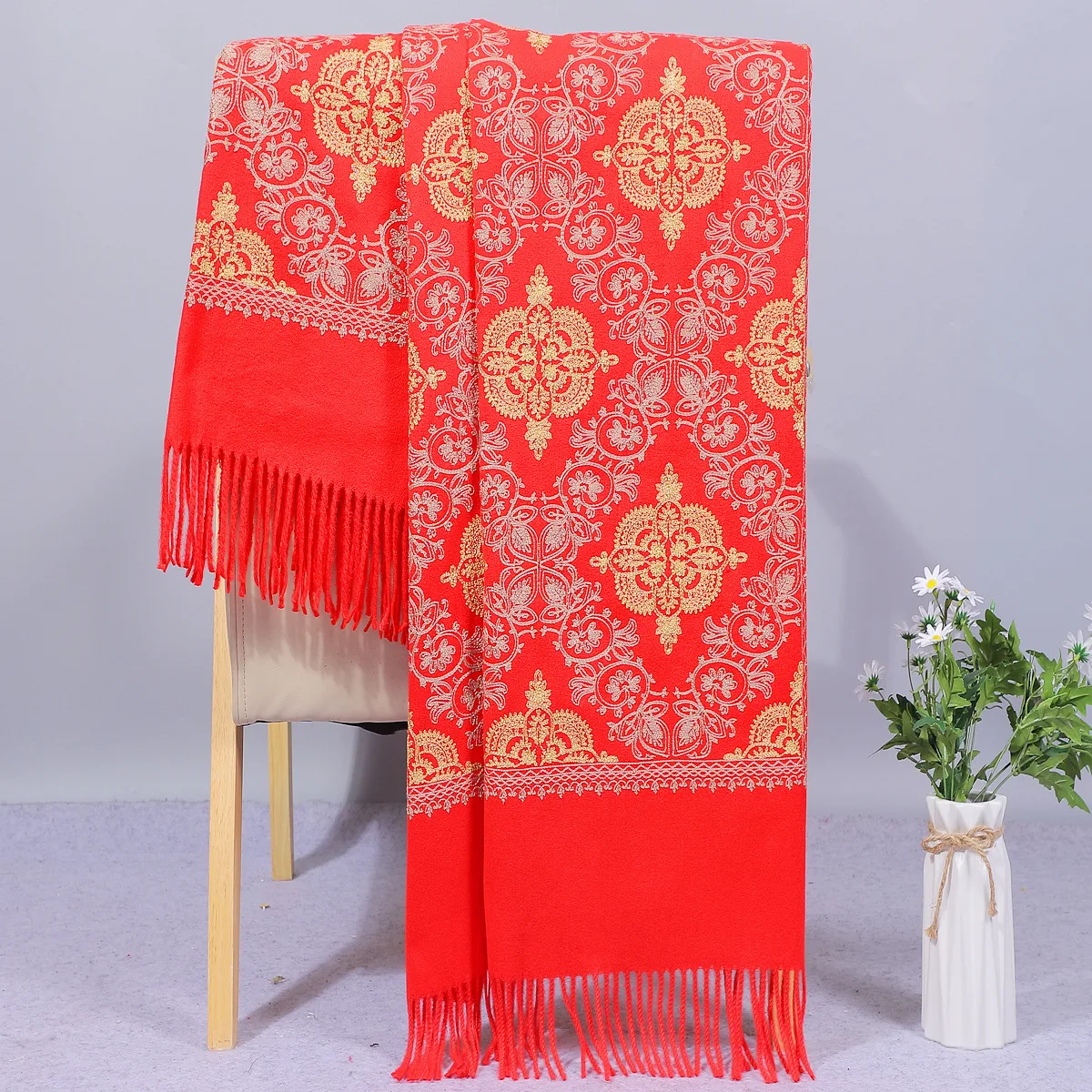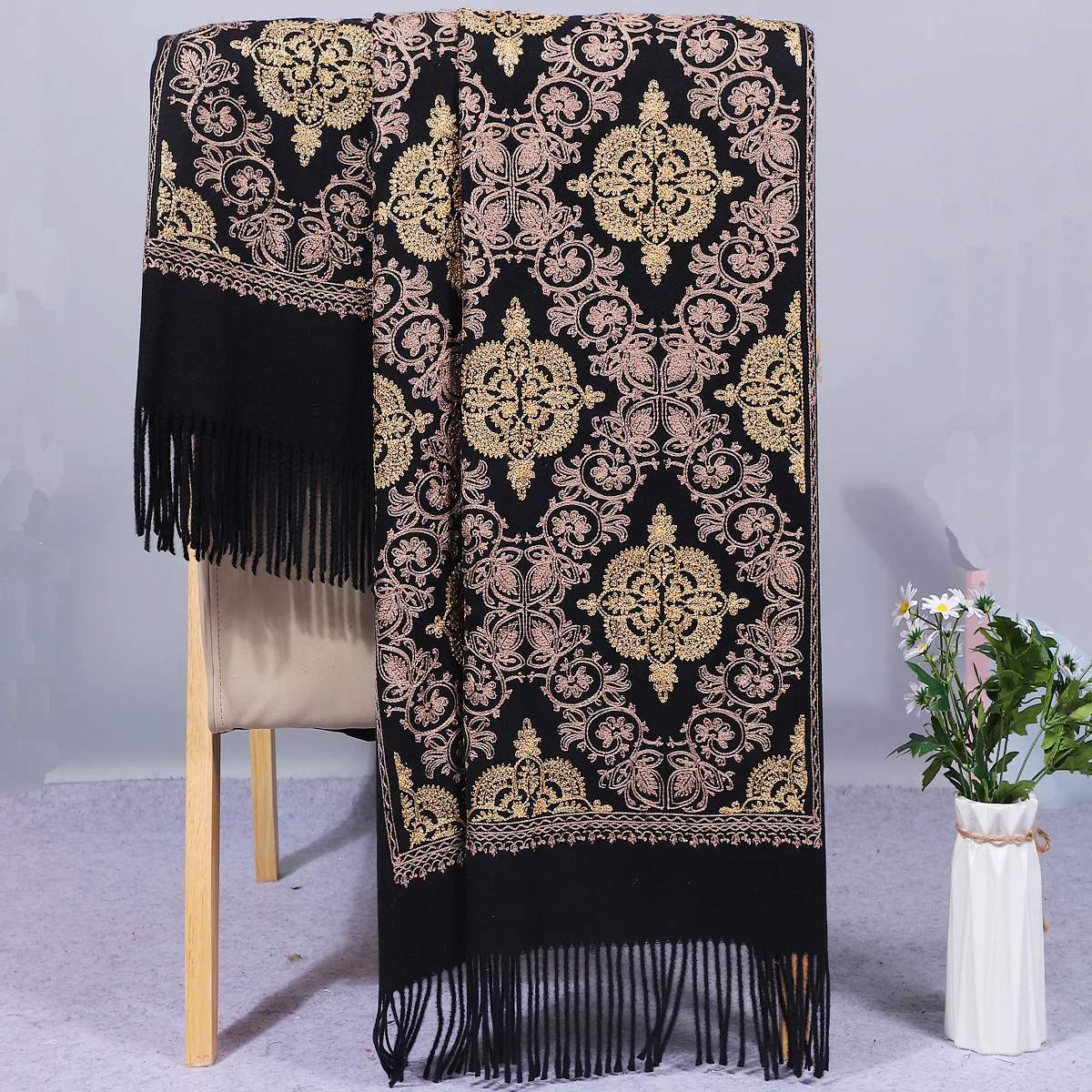 Long Scarf Pashmina Cashmere Blend Scarves Embroidery Flower Mujer Bufanda Wrap Vintage Women Autumn Winter Soft Shawls