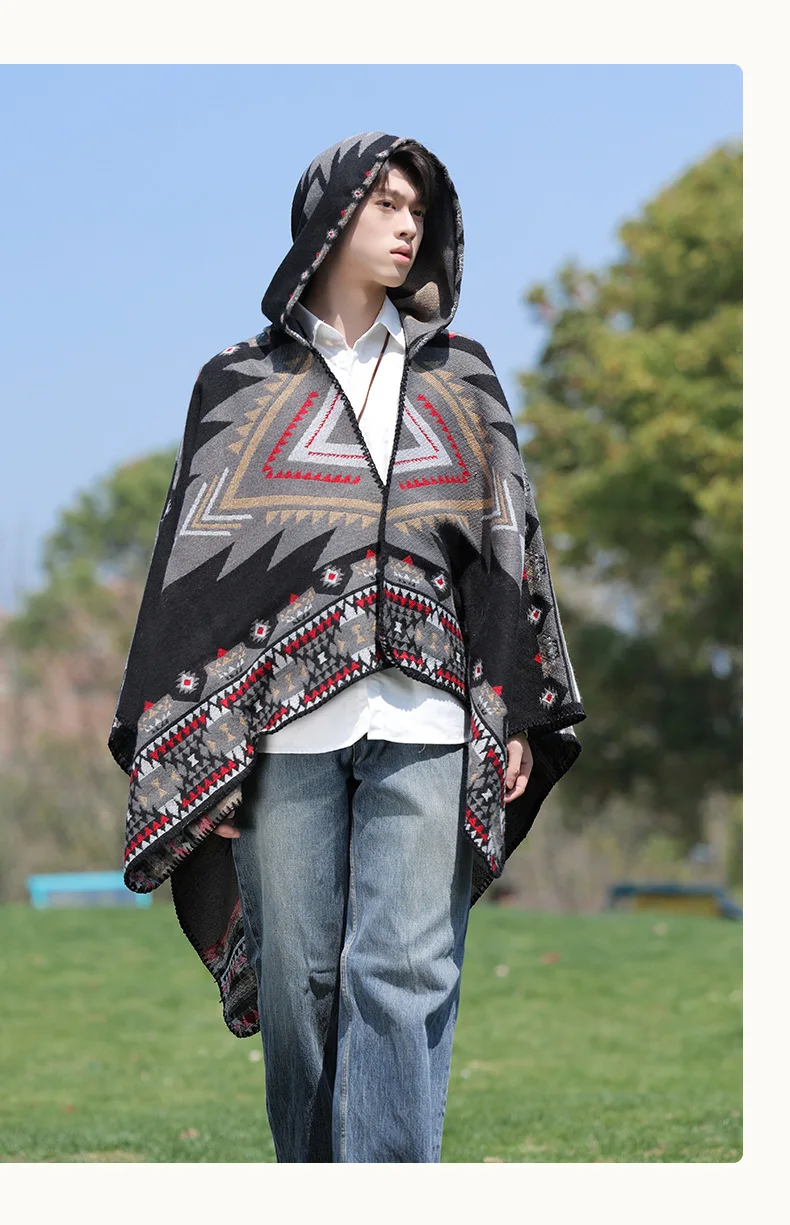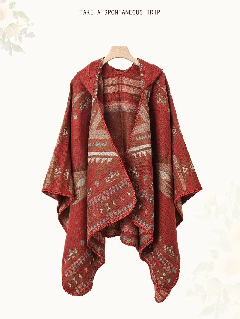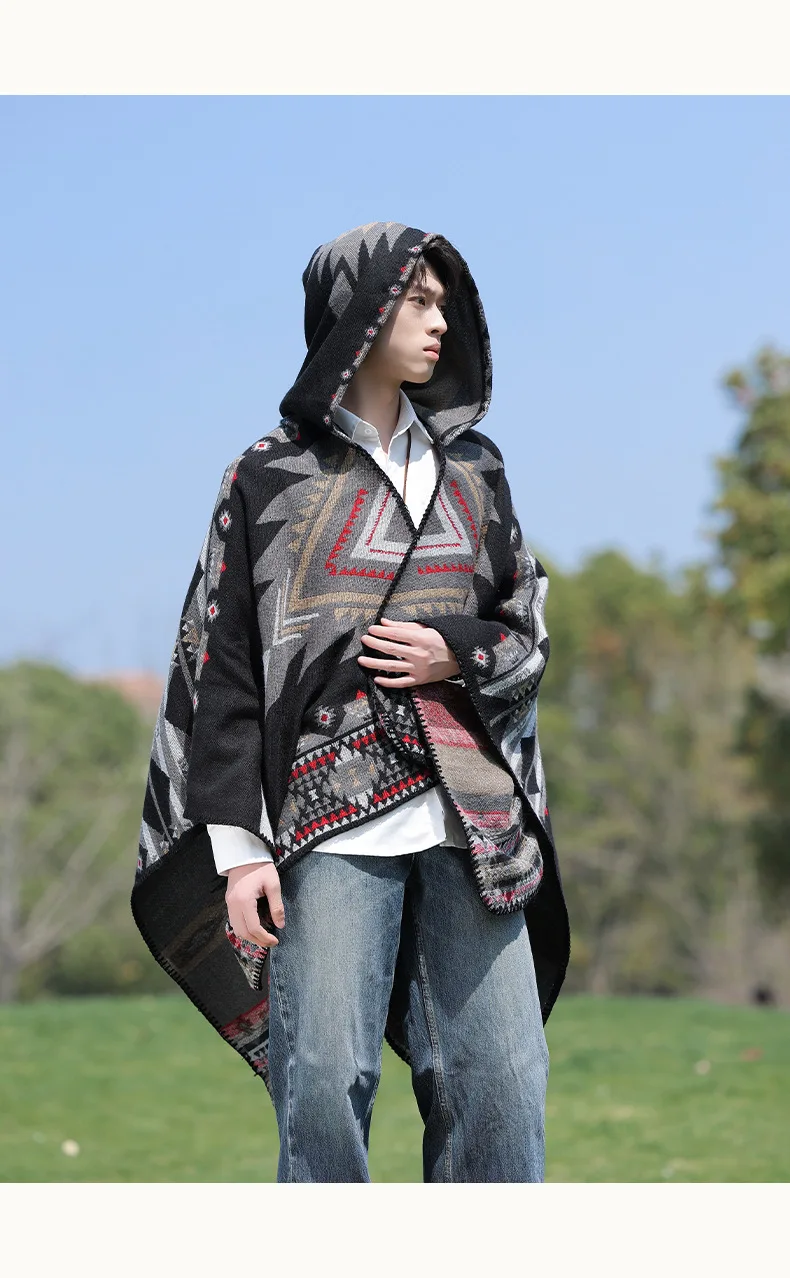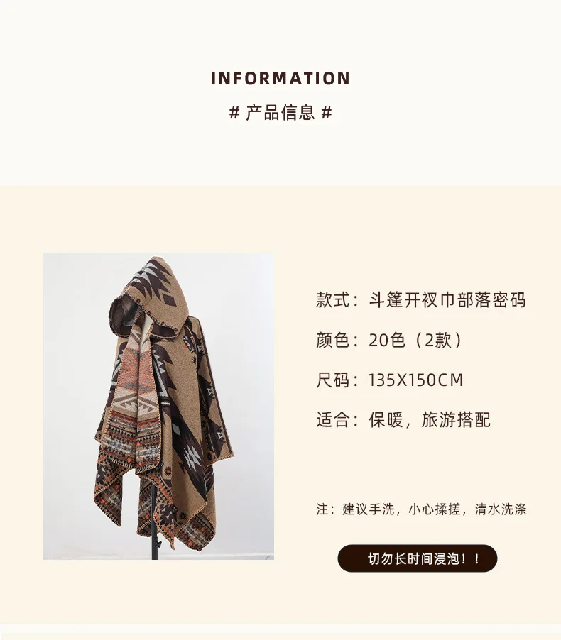 Mens Cloak Cashew Flower Hooded Scarf Vintage Ethic Style Jacket Imitation Cashmere Shawl Women’s Outerwear Pashmina Ponchos