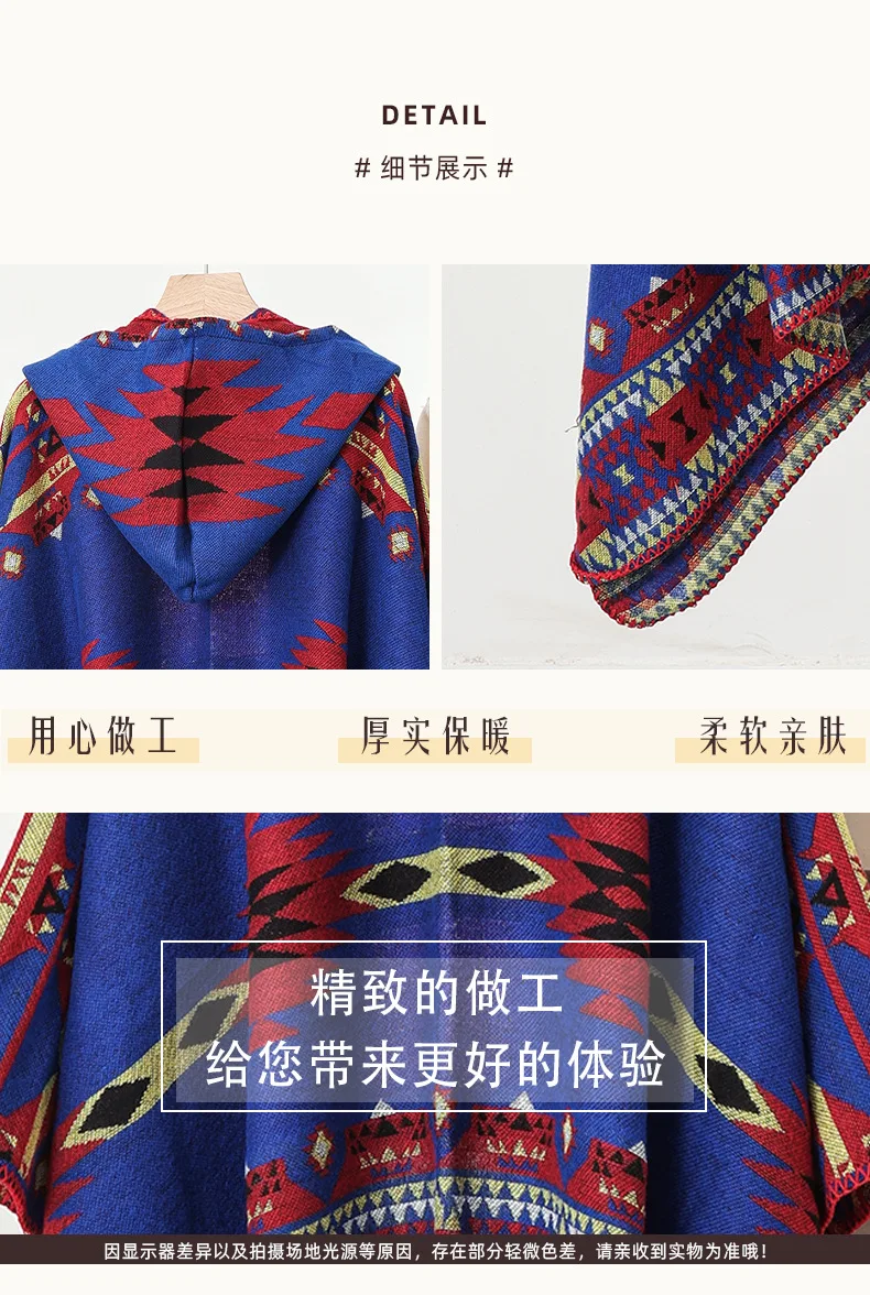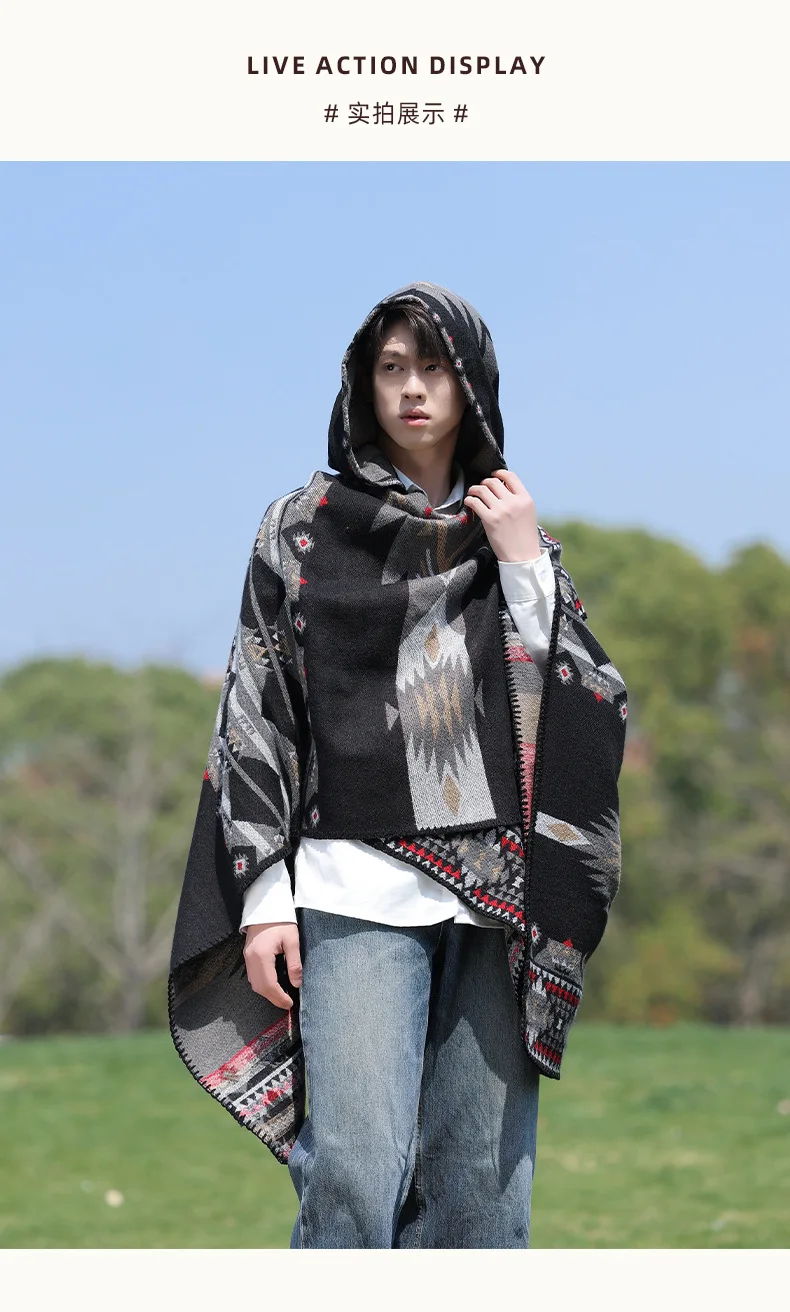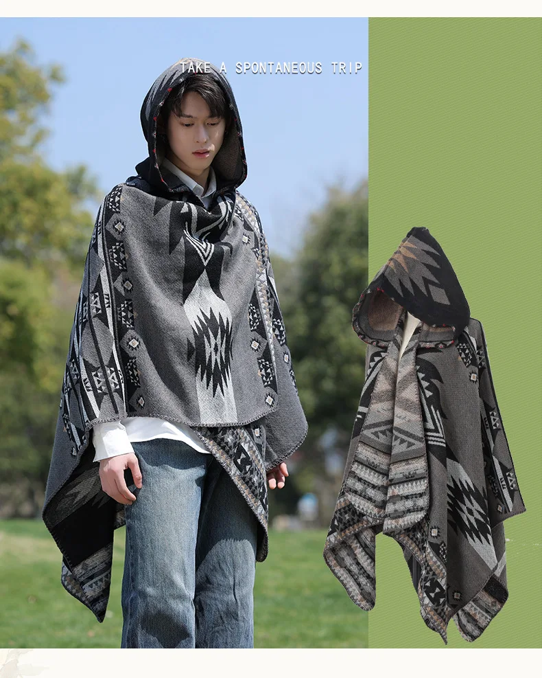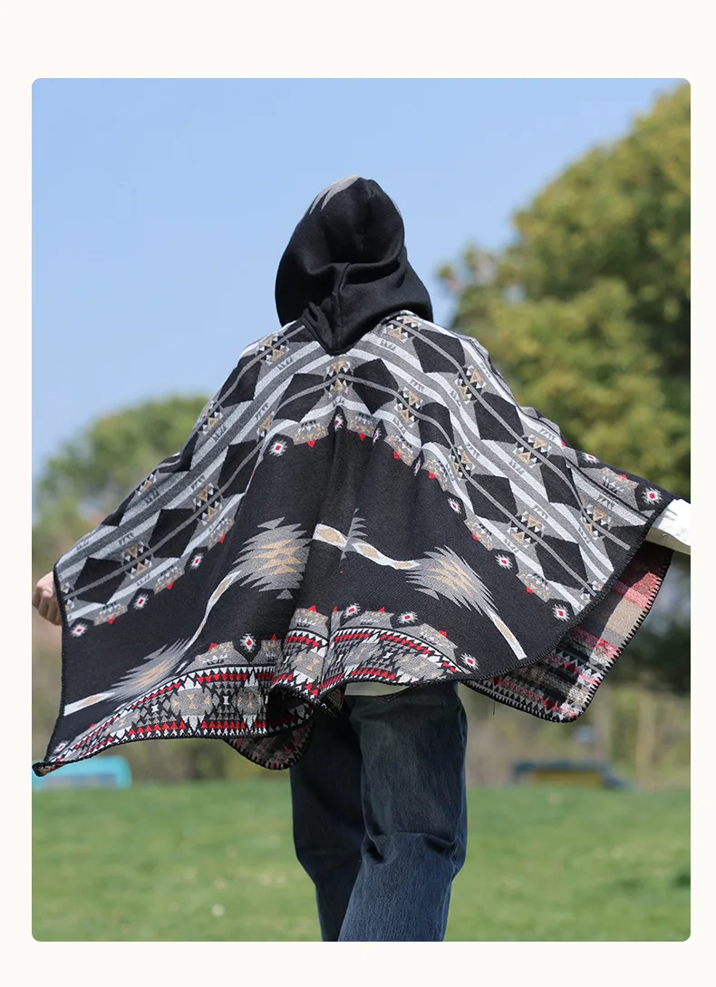 Mens Cloak Cashew Flower Hooded Scarf Vintage Ethic Style Jacket Imitation Cashmere Shawl Women’s Outerwear Pashmina Ponchos